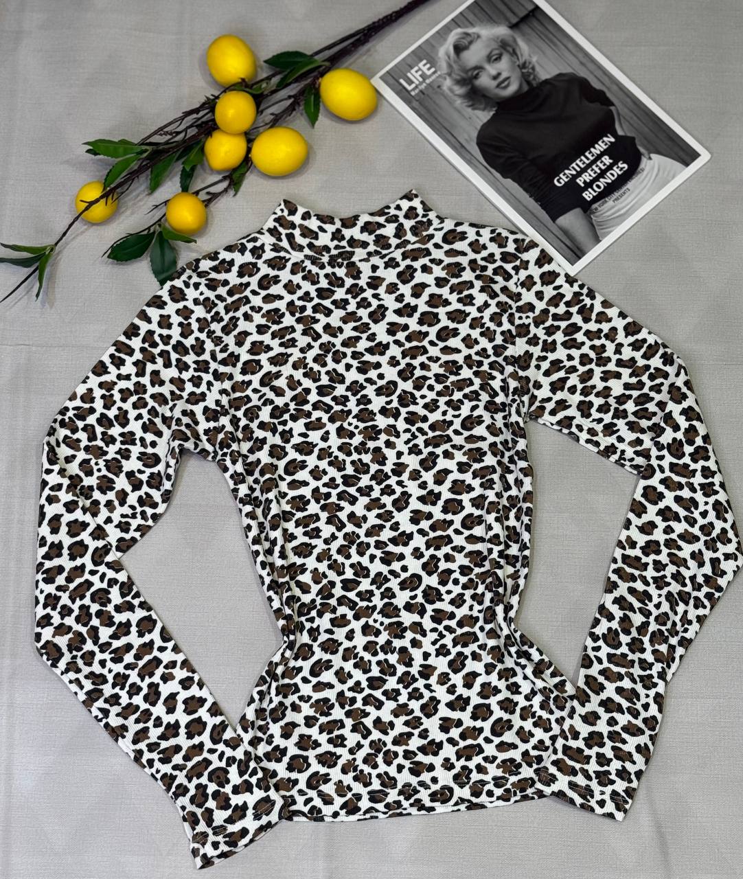 بلوز پلنگی استین فینگری یقه سه سانت فری سایز 36 تا 42 قد کار 60 قیمت 398 جنس فانریپ پنبه رنگبندی سفید موکا شکلاتی کرم